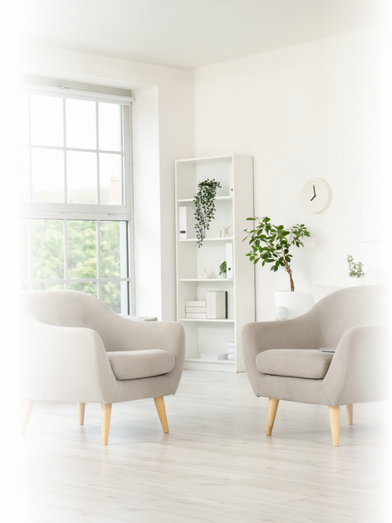 O consultório foi pensado para proporcionar conforto, privacidade e acolhimento. Aqui, cada sessão é conduzida de forma individualizada, respeitando o tempo e as necessidades de cada paciente. Os resultados são construídos com base numa relação de confiança e acompanhamento contínuo, permitindo que cada pessoa se sinta segura para partilhar a sua história e avançar no processo de tratamento.